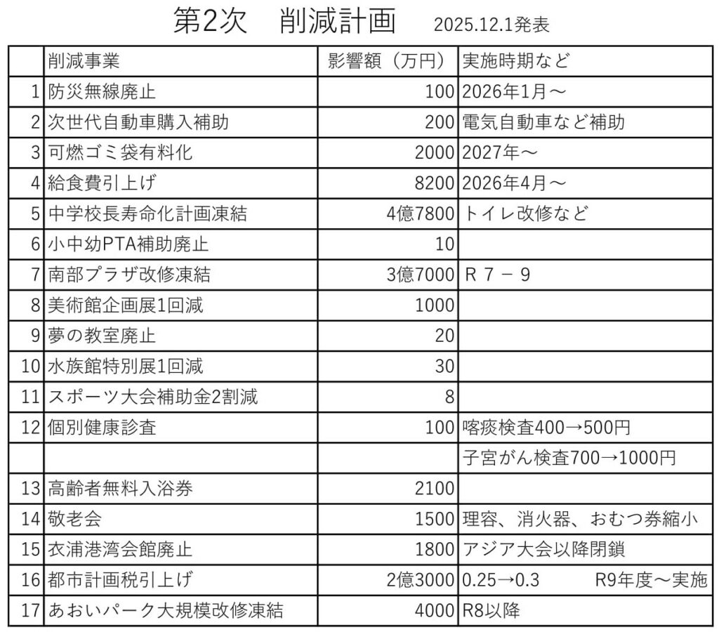 小池市長の削減施策ぞくぞく小池市長のゴマカシ「財政非常事態宣言」のもと、11月5日の第一次削減施策に続いて、12月1日付で第2 次削減施策が、議員に投げ込まれました。 何の説明もなく、学校のトイレ洋式化などの改修計画約5 ... 続きを読む →